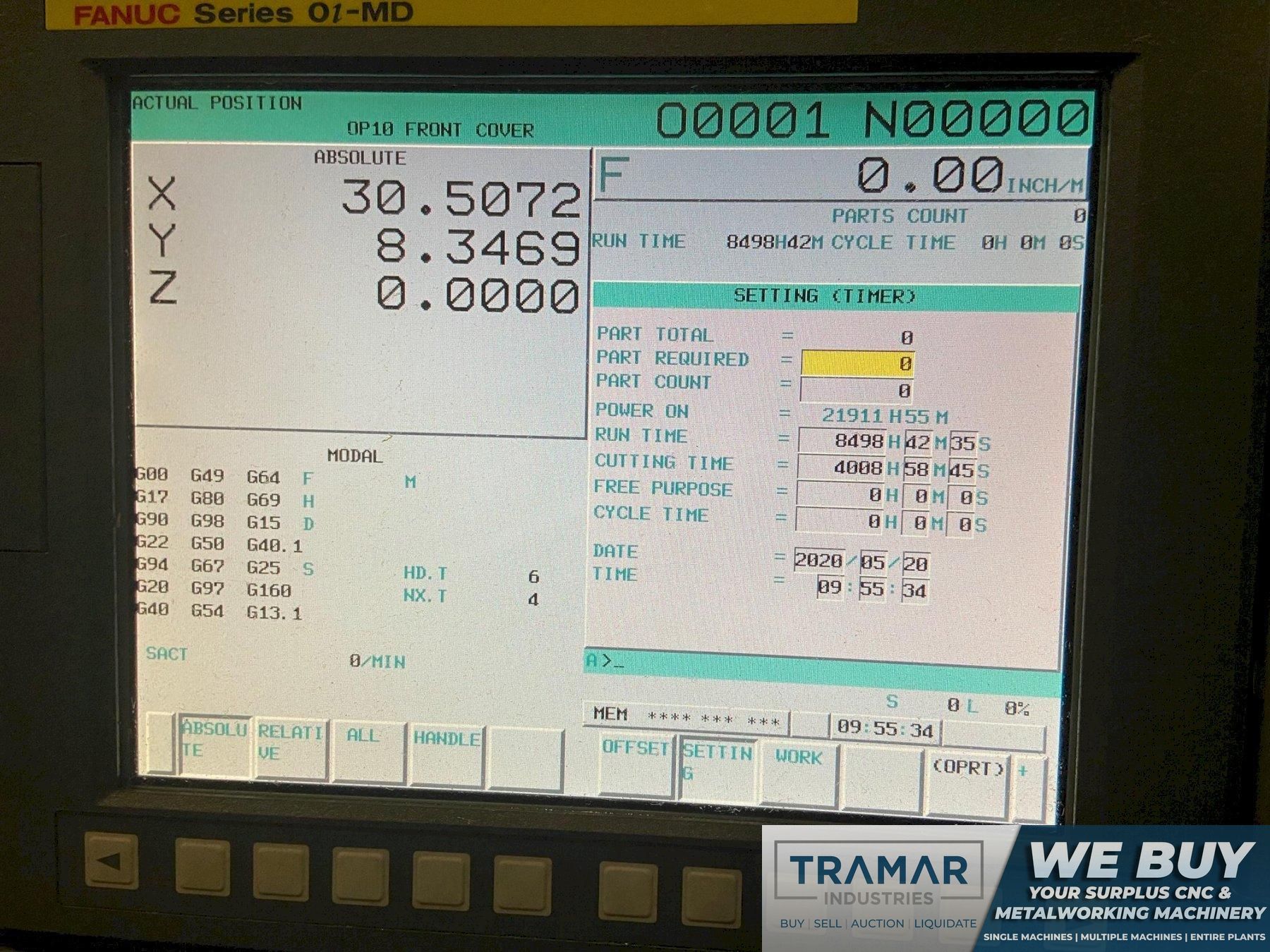 - Fanuc 0i-MD CNC Control- Chip Auger- Coolant Tank & Pump- Spindle Chiller- 30 Station Side Mount Tool Changer- Coolant Thru Spindle- Available Manuals